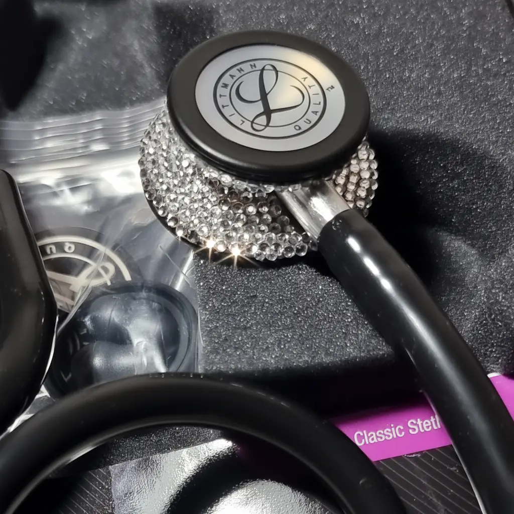 Experience true medical luxury with the Black Swarovski Edition – Littmann Classic III. Adorned with genuine Swarovski crystals and crafted in a stunning Black Blue finish, it’s more than a stethoscope — it’s a statement of elegance and precision. Perfect as a premium gift for doctors, medical students, or healthcare professionals who deserve something truly special.