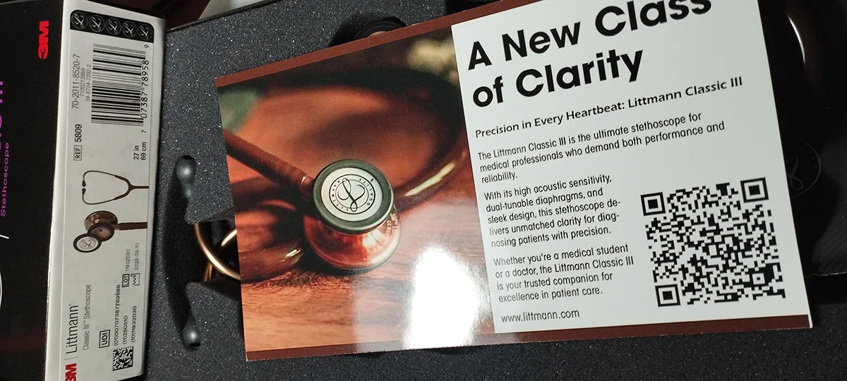 Received a genuine product with proper Littmann packaging. Sound is very clear and build quality is strong. Highly recommended. Thanks for keeping it original!
