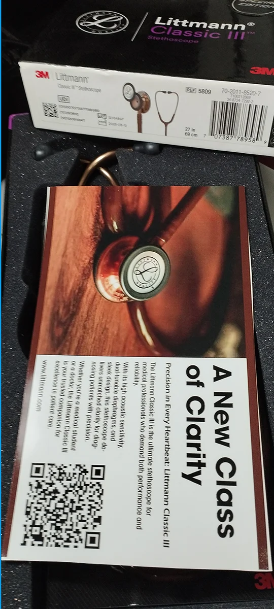 Bohat zabardast stethoscope hai, its special gift for my friend! Chestpiece ka sound bohat clear hai. Quality bhi bohat aala hai, sab notice karte hain hospital mein. littmannstethoscopes.pk se first time order kiya, great experience. 100% original!